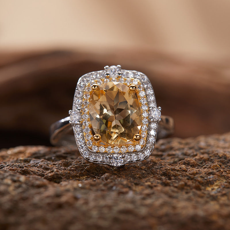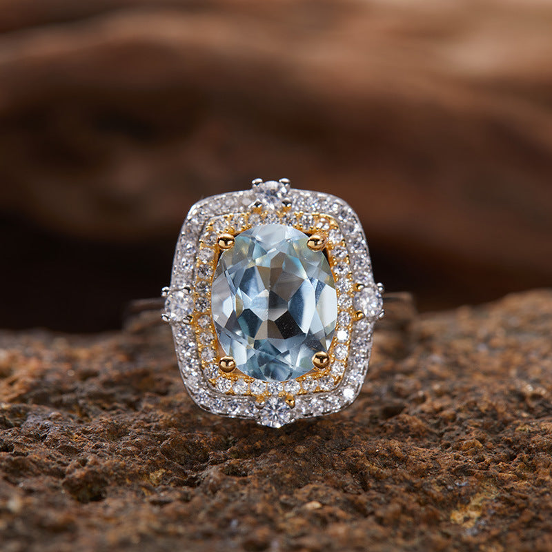 S925 Sterling Silver 18K Gold Natural Gemstone Energy Ring Jewelry
